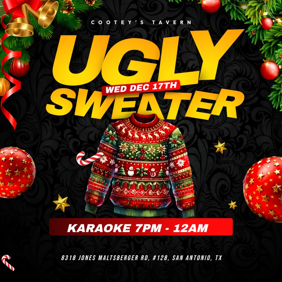 #CooteysTavern #UglySweaterParty #ChristmasParty #KaraokeNight #HolidayFun #SanAntonioNightlife #FestiveVibes #TisTheSeason